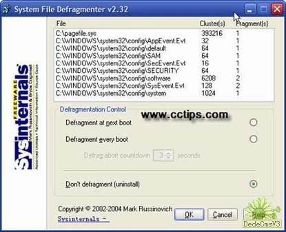 最后,如果你使用第三方的磁盘碎片整理软件,例如O&O Defrag,那么这类软件自带的Offline Defrag(脱机整理,或者其他类似的称呼)也可以在系统重启动的时候整理这些被锁定的系统文件