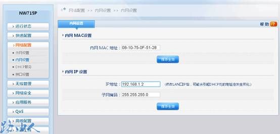 (1)登陆P2的管理页面,点击网络配置-内网配置,修改路由的IP,和P1在同一网段。