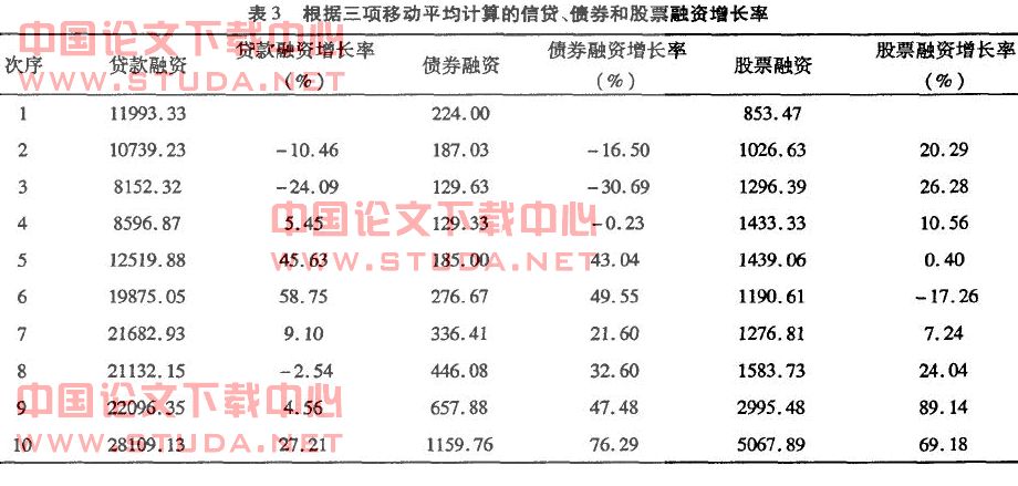 [论文摘要]通过对我国l2年的信贷规模、企业债券与股票融资的数据,运用移动平均法进行长期趋势分析,发现...